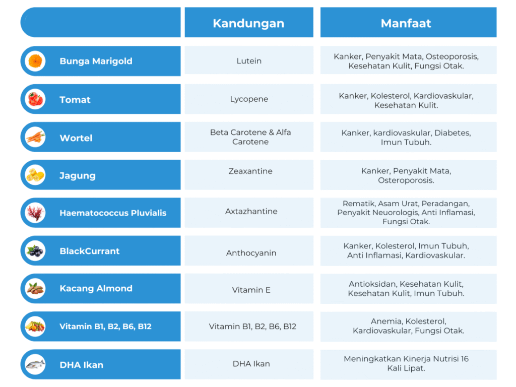S.Lutena: 6 karotenoid langka (Lutein, Lycopene, dll) dengan bioavailabilitas tinggi.